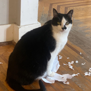 Brought home from the Pixy Project as a kitten. He has quickly grown into a handful of fur and sharp claws.